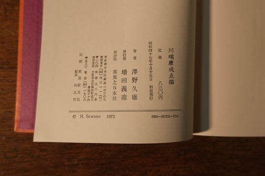 川端康成 点描 この美しい日本の人 実業之日本社_昭和47年初版印刷