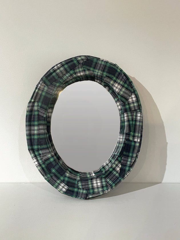 【美しい窓辺/ミラー オヴァル S】タータン グリーン×ホワイト