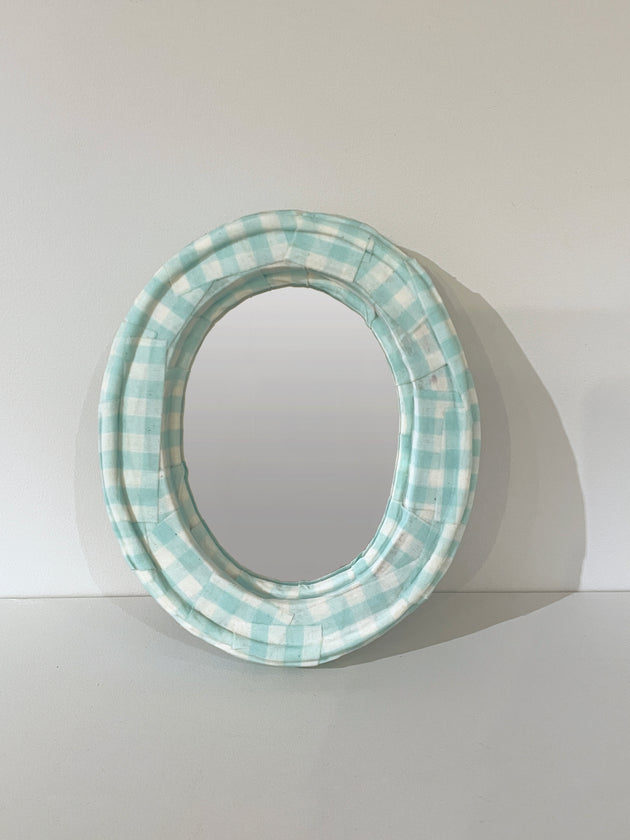 【美しい窓辺/ミラー オヴァル S】ギンガム ブルー