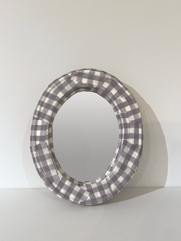 【美しい窓辺/ミラー オヴァル S】ギンガム グレー