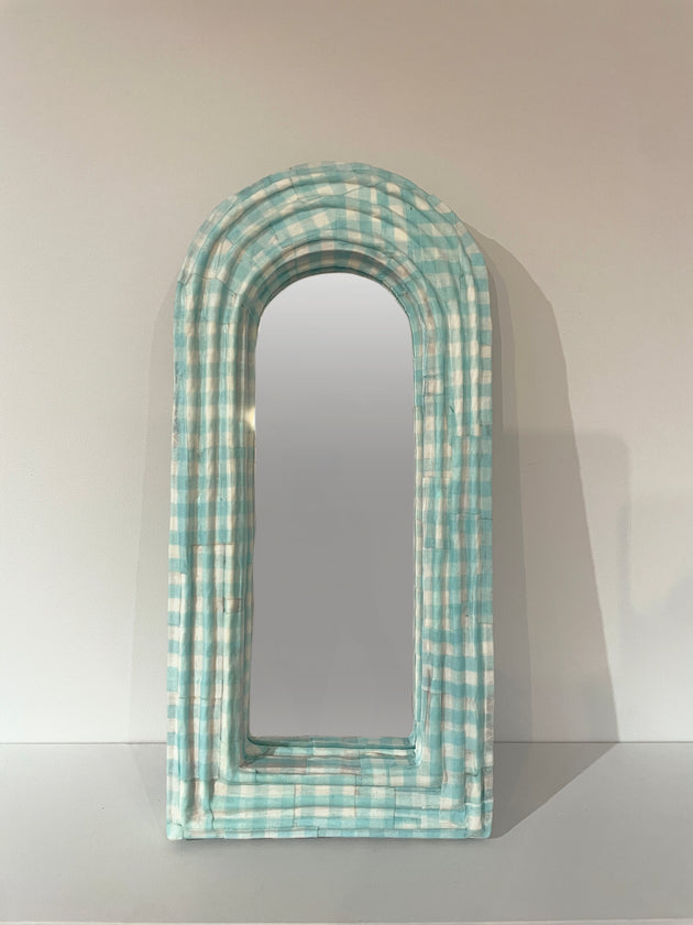 【美しい窓辺/ミラー アーチ M】ギンガム ブルー